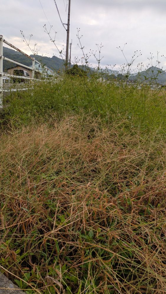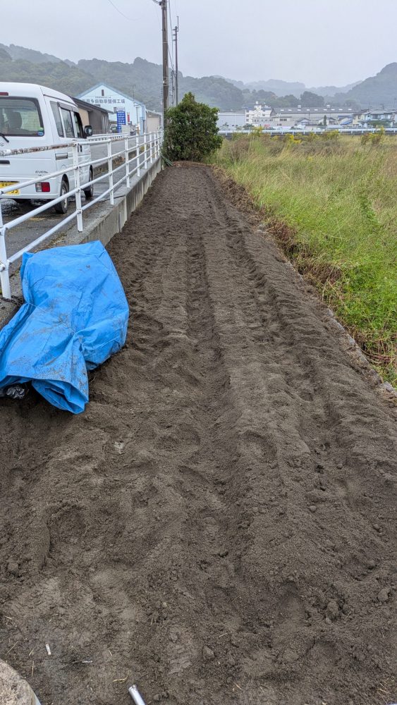 この状態の場所を単気筒エンジンの草刈機で伐採し、ガソリンエンジンの耕耘機で掘りおこしました。